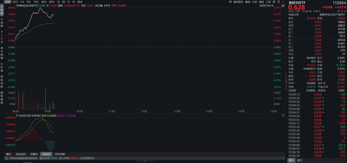 近期《關(guān)于治理價(jià)格無(wú)序競(jìng)爭(zhēng)維護(hù)良好市場(chǎng)價(jià)格秩序的公告》發(fā)布,“反內(nèi)卷”行情爆發(fā)。光伏50ETF(159864)大漲超4%,盤中漲幅一度超5.6%,多只成分股放量大漲。