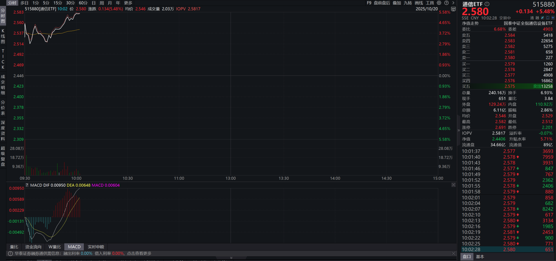 注:數(shù)據(jù)來源:wind,截至2025/10/17,通信ETF規(guī)模為84.60億,在同類15只產(chǎn)品中排名第一。
